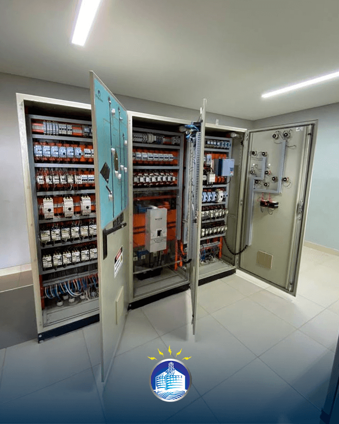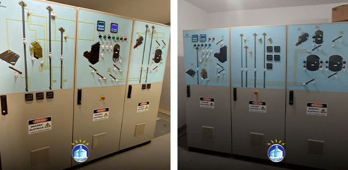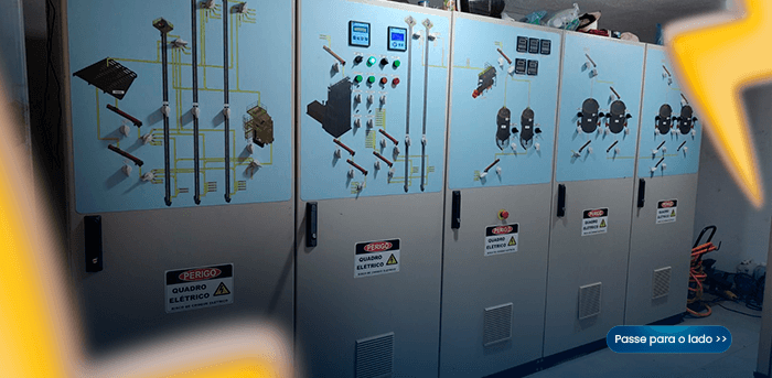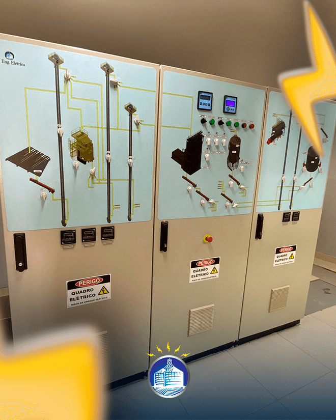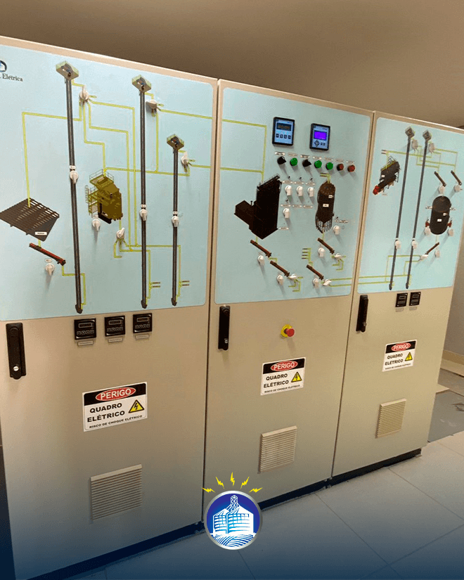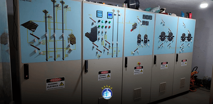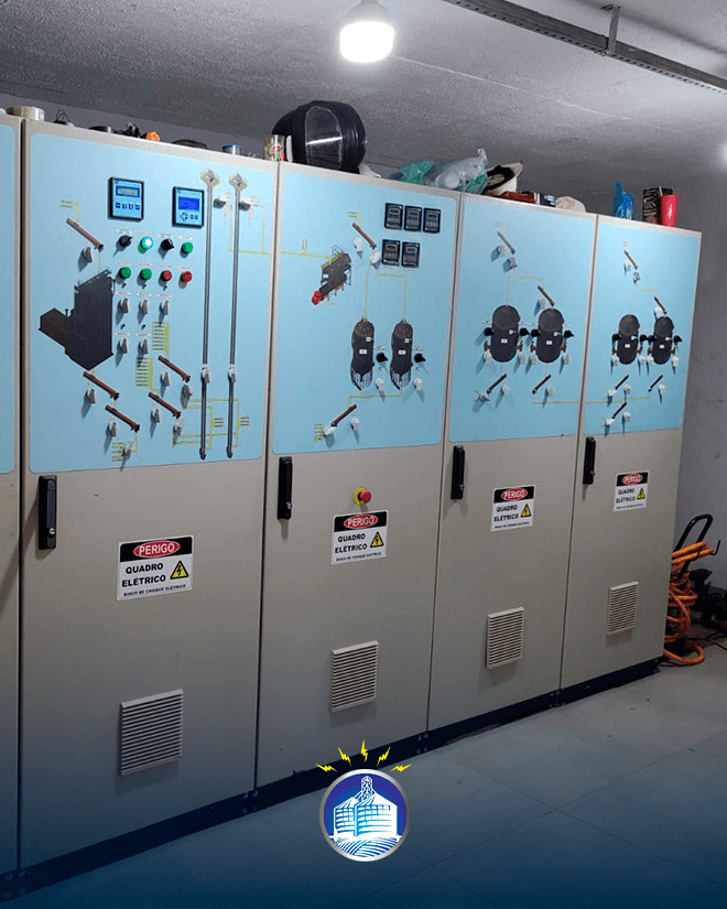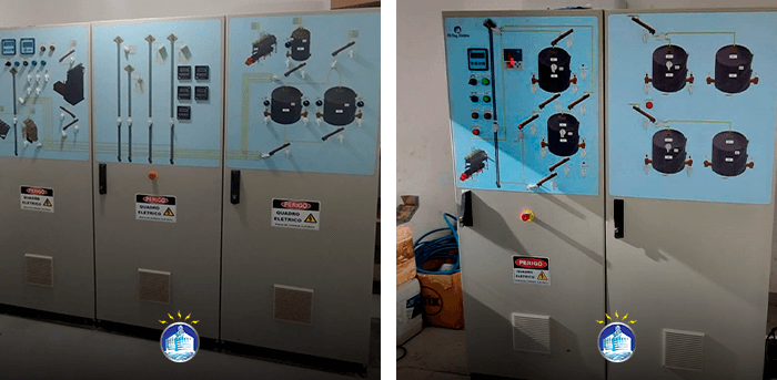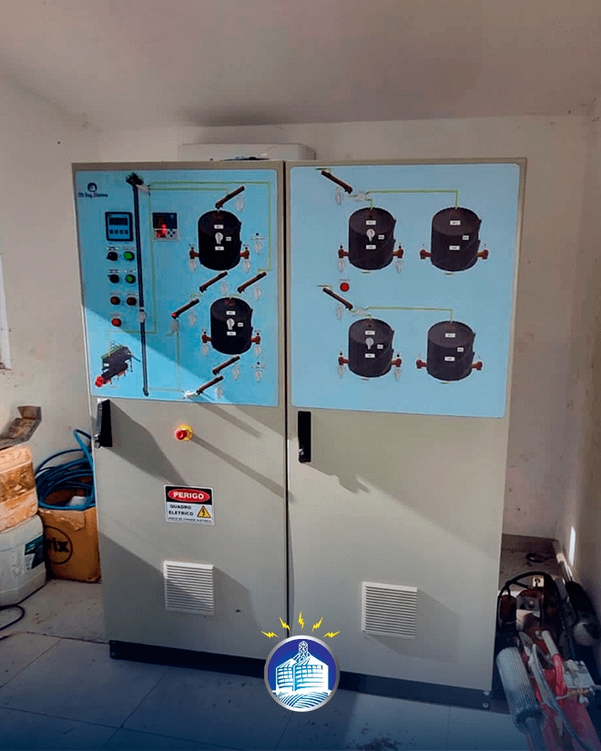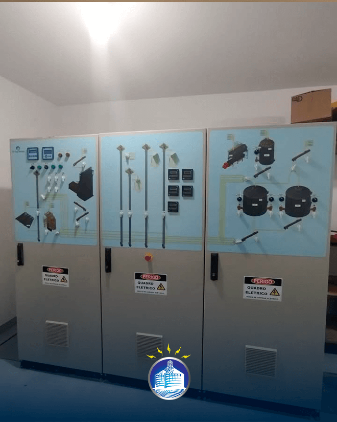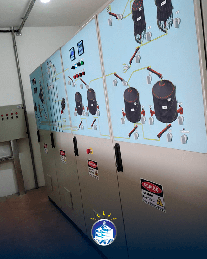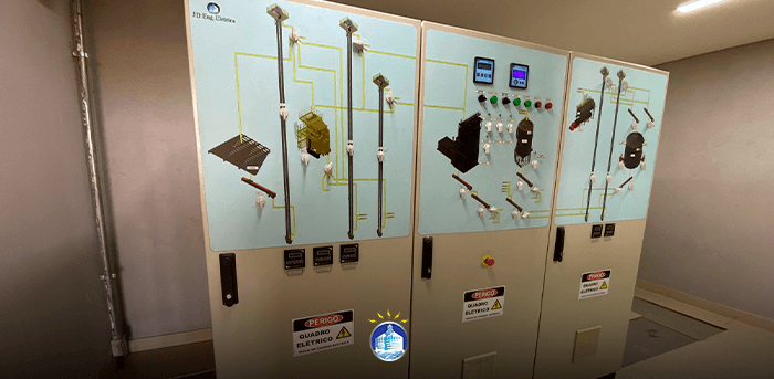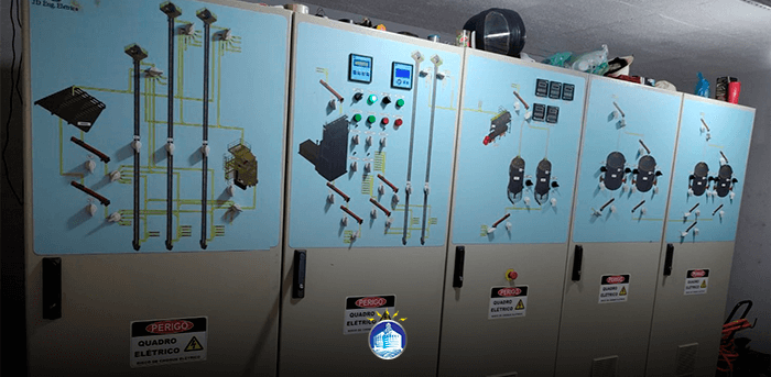 Os quadros de comando da JD ENG. ELÉTRICA utilizam seus componentes na marca WEG e possui desenho sinótico para melhor operação.